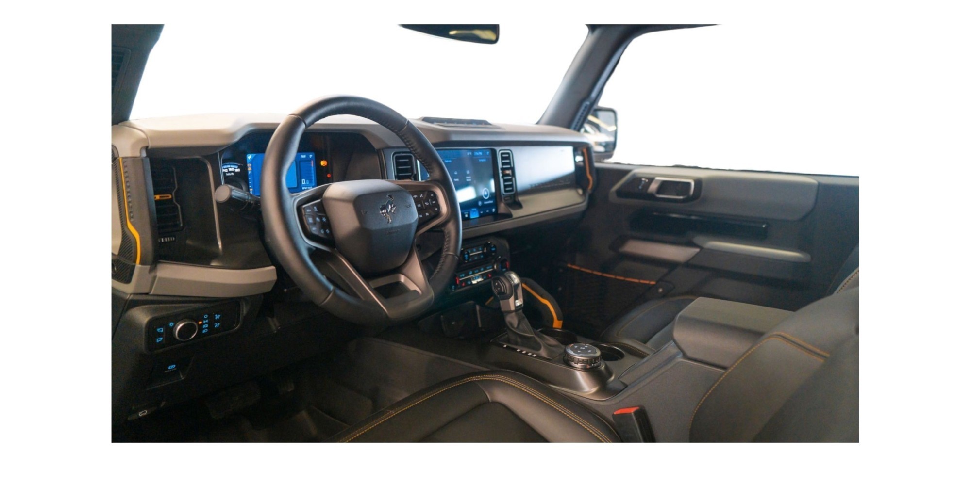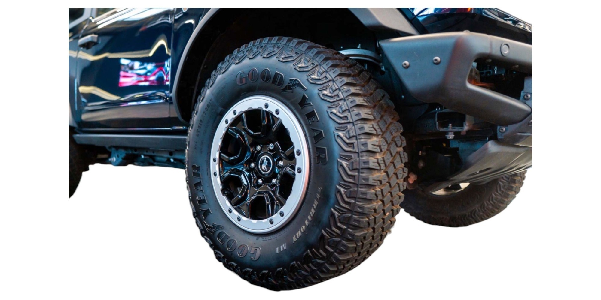 Bronco is equipped with a Sasquatch Package, a unique offroad package that allows you to get practically anywhere. It includes lockable wheels, a 4.7-speed, high-suspension raised axle, 17 “high-gloss aluminum wheels, and 35” LT315 / 70R17 BSW tires (Mud-Terrain M / T).