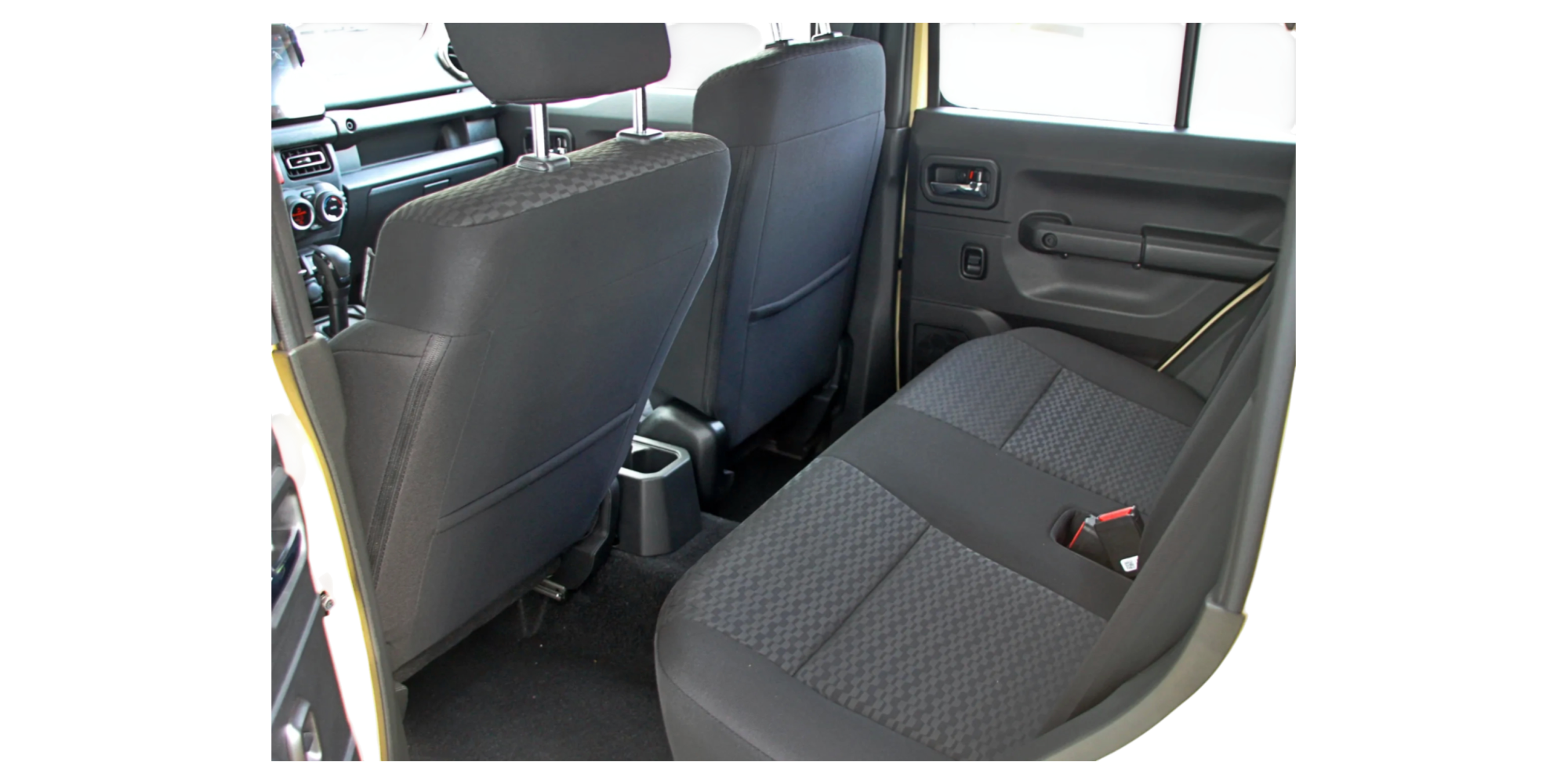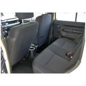 - Dark fabric seat upholstery