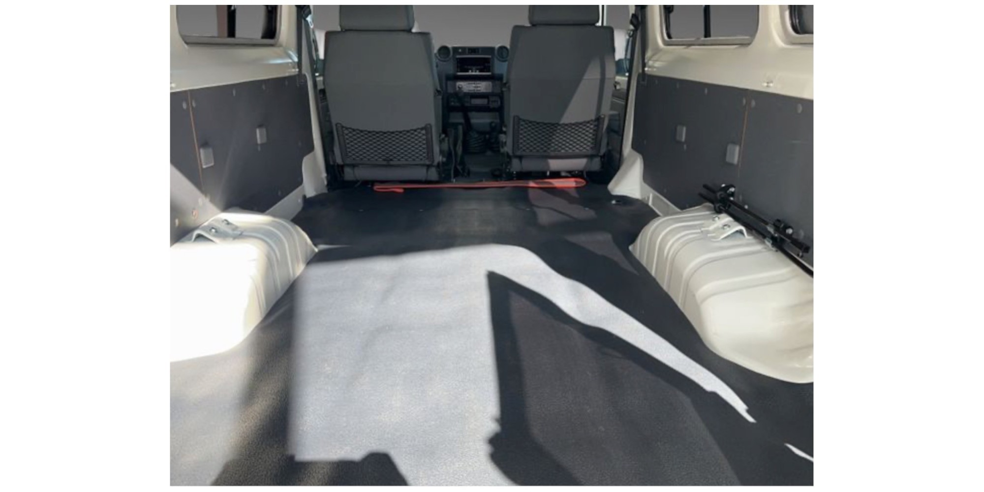 - Cavity, underbody, paint, interior and rim sealing Window tinting, wind deflectors, storage consoles GRJ SCHEEL-MANN travel seats, height adjustment, rear track widening TD-Spezial alloy wheels 8Jx17, trailer coupling, steel cable winch bumper Underride protection made of 8 mm aluminum, TD-Vision LED lighting Gas pedal tuning, cruise control, auxiliary heating EU navigation with reversing camera Further special equipment is available on request!